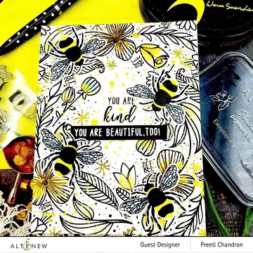 Have you ever wished for a special detailed stamp portraying a honeybee? Well, now you can have one! This unique mini stamp & die set features a fun multi-layered bee and coordinating sentiments. We are sure you will have fun creating amazing handmade projects featuring this beautiful bee and the punny sentiments included.